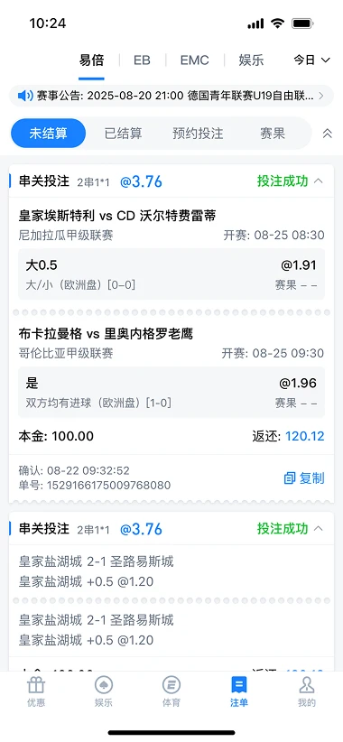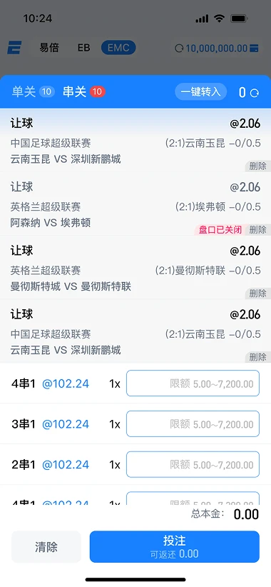 每周于【易倍体育】【EMC体育】【EB体育】场馆投注指定赛事,享赛事单场馆总负盈利100%全额包赔!本活动无需申请,赛事结束12小时后自动结算包赔彩金。详情请查看官网活动页面。